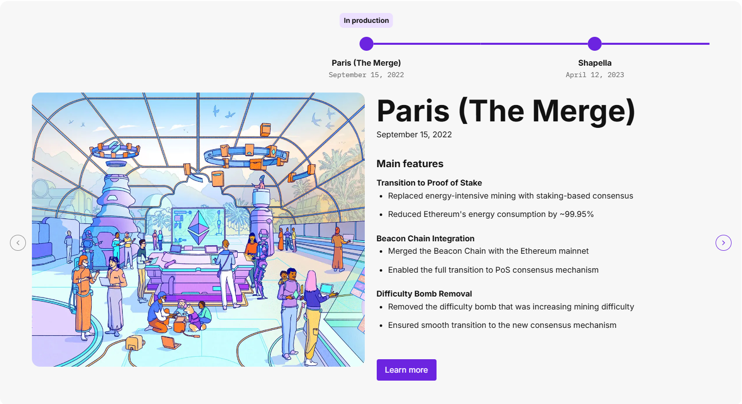 The shift from proof-of-work to proof-of-stake fundamentally changed the way the protocol works. Ethereum parted ways with Bitcoin’s proof-of-work approach to consensus, rooted in computationally and energy-intensive hashing, to a skin-in-the-game system that requires validators to stake ETH tokens to maintain the network and reap rewards.