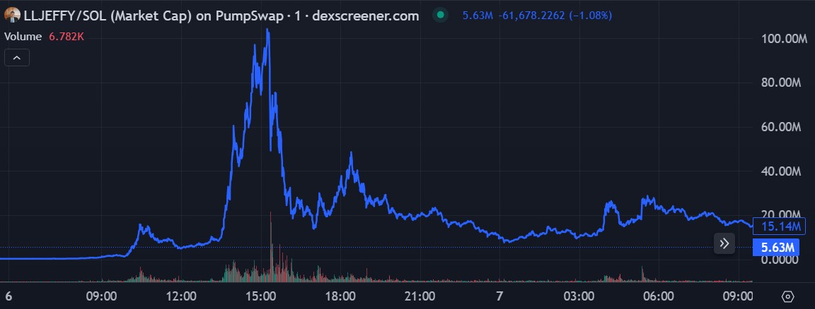 LLJEFFY’s market fell to $5.63 million from its $105 million peak. Source: DEX Screener