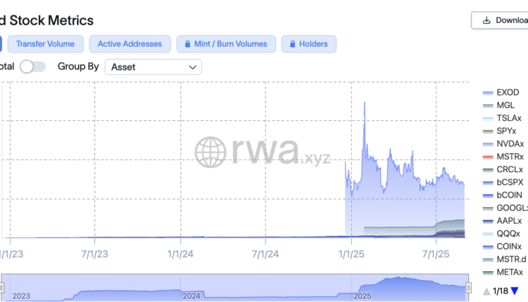 According to analytics platform RWA.xyz, the tokenized stock market capitalization stands at $342 million at this writing, representing just 1.2% of the overall $27.9 billion tokenized RWA market cap.