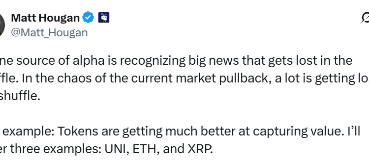 Hougan said in an X post on Saturday that in the chaos of the current market pullback, big news is getting lost, such as the level of value capture in digital assets trending upward.