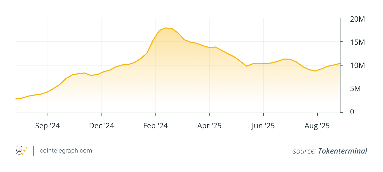 • Key drivers: Ultra-low fees ($0.01 average), Coinbase’s 100 million+ user base for onboarding, stablecoin flows and partnerships for consumer DApps.