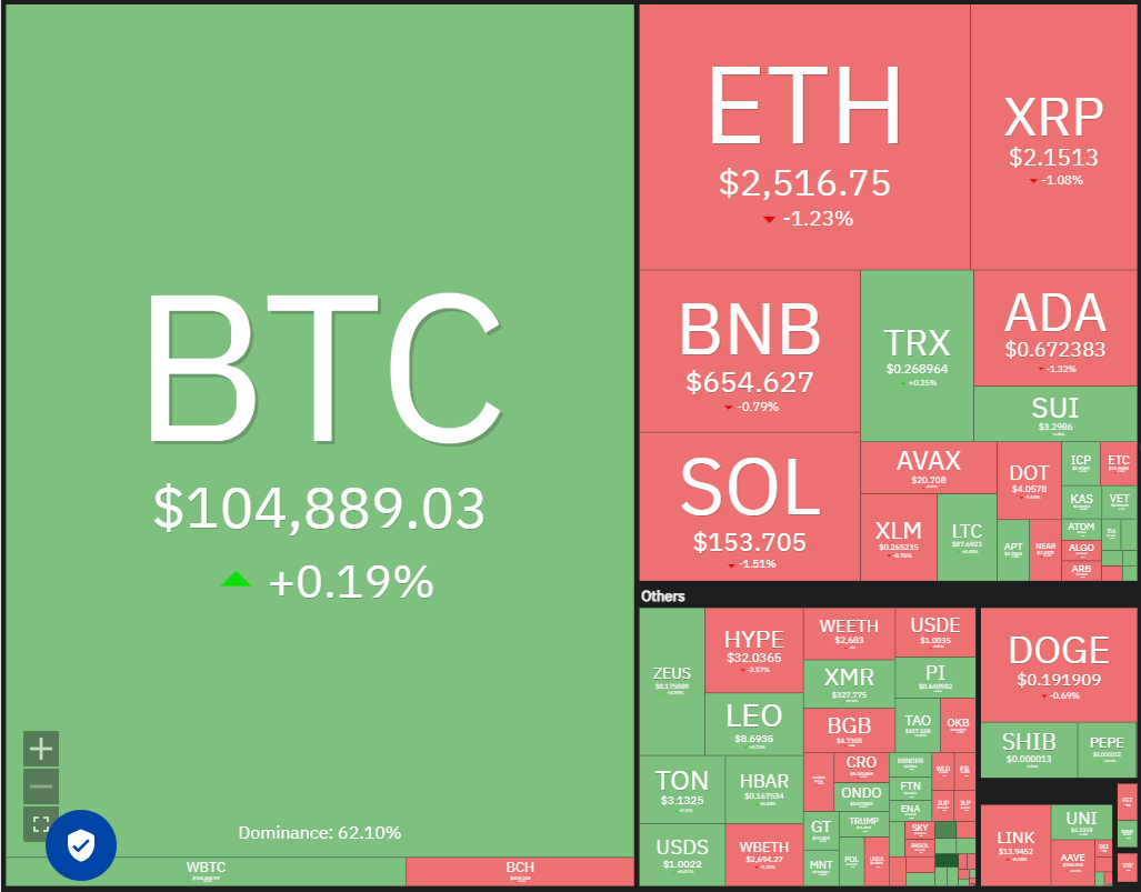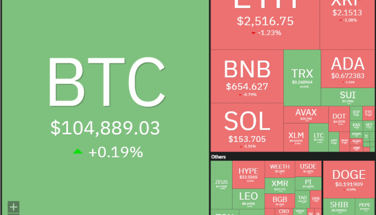 Bitcoin (BTC) remains stuck below the $105,000 level during the weekend, indicating that the sellers have maintained their pressure.