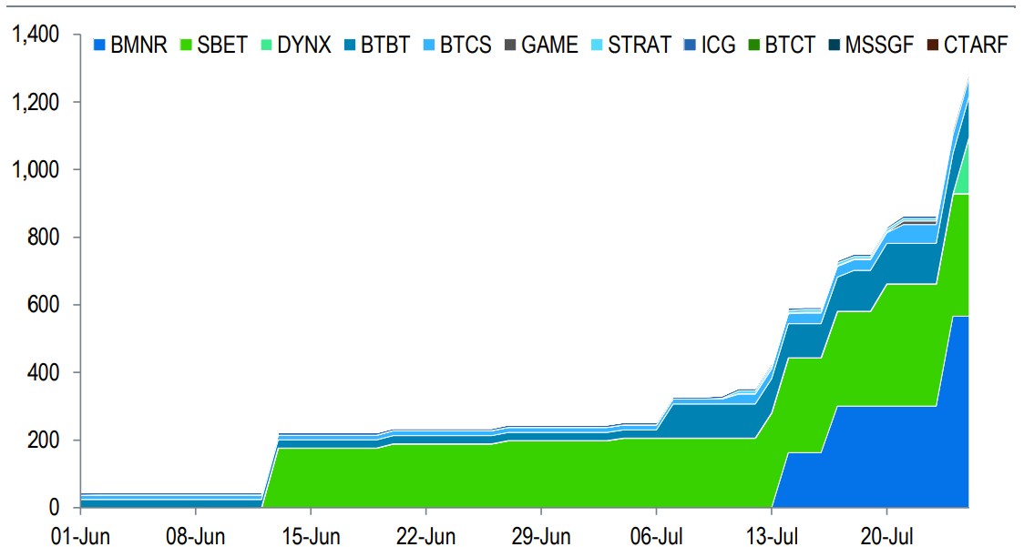 The report noted that Ethereum-focused treasury firms may hold up to 10% of the total supply in the long term, citing regulatory arbitrage opportunities and programmable yield via staking and DeFi.