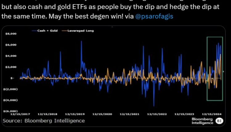“[T]here’s basically record flows going into leveraged long ETFs but also cash and gold ETFs as people buy the dip and hedge the dip at the same time. May the best degen win!,” Bloomberg Intelligence analyst Eric Balchunas said in an April 23 post on the X platform.
