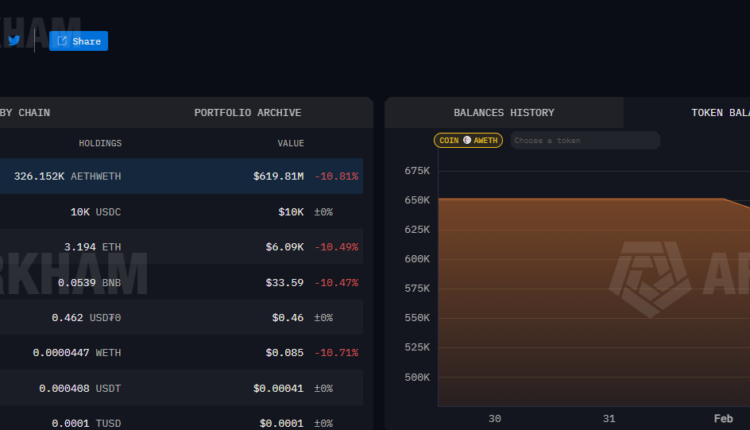 It held about 651,170 Ether (ETH) in the form of Aave Ethereum wrapped Ether (AETHWETH) on Sunday. That amount dropped by 404,090, to about 247,080 on Friday, at the time of writing.