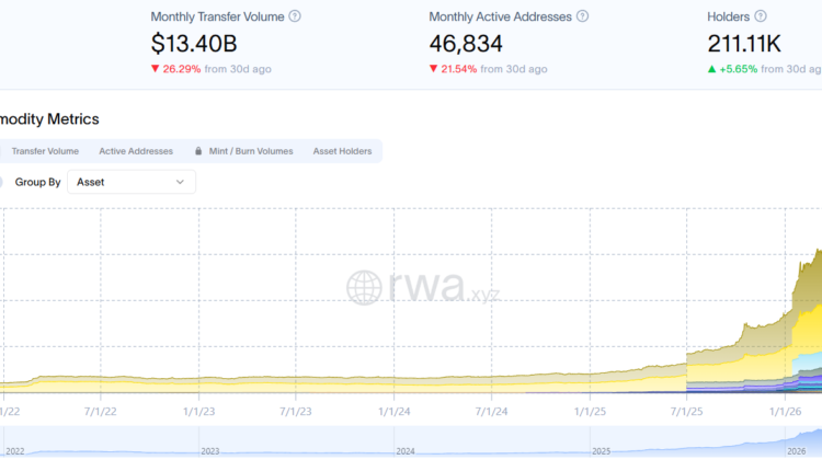 Investor demand for tokenized commodities is on the rise. Tokenized commodities surged to $7.7 billion in cumulative market capitalization on March 6, but retraced to $7 billion as of Monday, according to data from RWA.xyz.