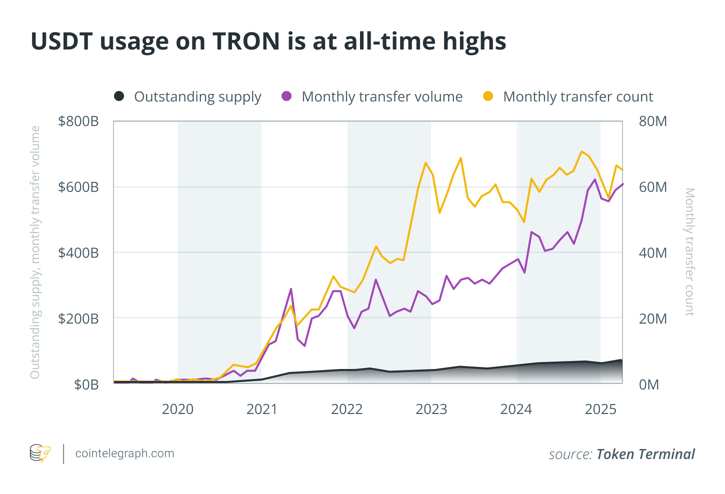 The Tron network has seen a spike in USDt usage. Source: Cointelegraph