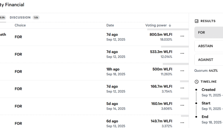 The governance vote was passed nearly three weeks after the official launch of the WLFI token on Sept. 1, which resulted in a 40% price decline within the first three days of its launch, causing millions of dollars of losses for whales, Cointelegraph reported on Sept. 4.
