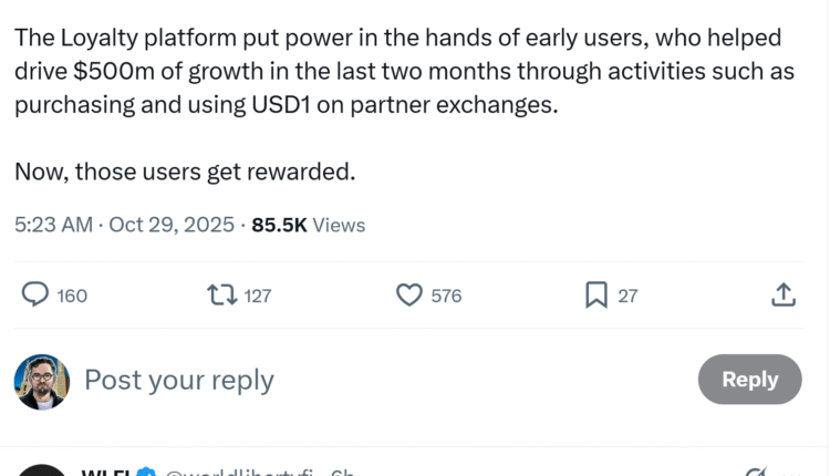 World Liberty said the points initiative will expand to include new venues, decentralized finance integrations, and more ways for users to earn and redeem rewards. “This is only the beginning,” the company wrote.