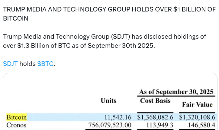 In total, Trump Media Group CRO Strategy is expected to buy up to $1 billion in Cronos, representing over 6.3 trillion tokens, according to the Q3 results.