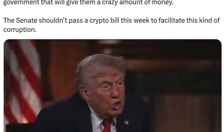 “The Senate shouldn’t pass a crypto bill this week to facilitate this kind of corruption.“