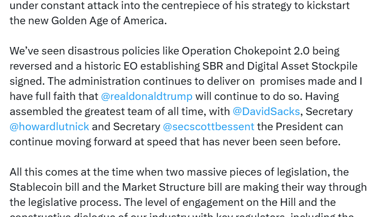 The crypto summit also comes as two major bills await congressional approval: the Stablecoin bill and the Market Structure bill, aiming to help lift the regulatory uncertainty around the US crypto industry.