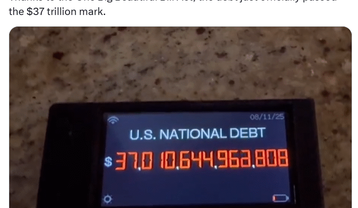“Thanks to the One Big Beautiful Bill Act, the debt just officially passed the $37 trillion mark,” said Representative Thomas Massie in a Wednesday X post.