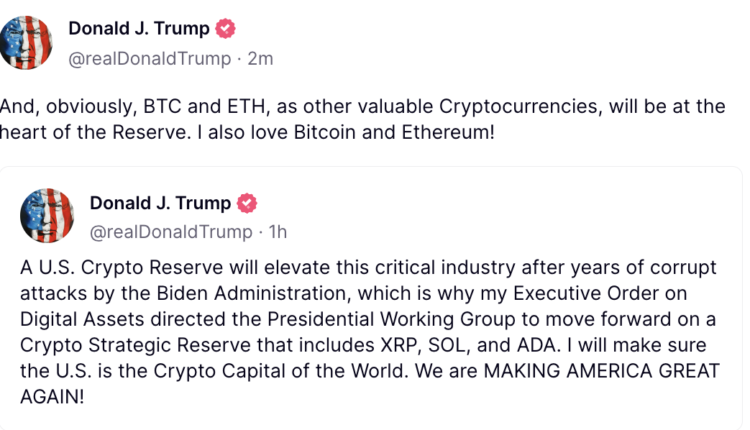 On March 2, Trump said his Working Group on Digital Assets had been directed to include three altcoins — XRP (XRP), Solana (SOL), and Cardano’s ADA (ADA) —in the US crypto reserve, Cointelegraph reported.