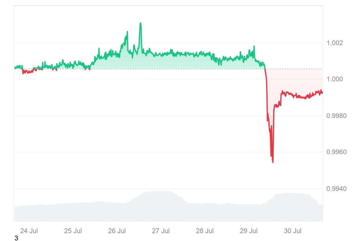 The announcement comes three weeks after Falcon’s USDf dropped below its intended $1 peg to as low as $0.9783 on July 8, creating investor concerns over the synthetic overcollateralized stablecoin’s collateral quality. USDf regained its dollar parity by July 14.