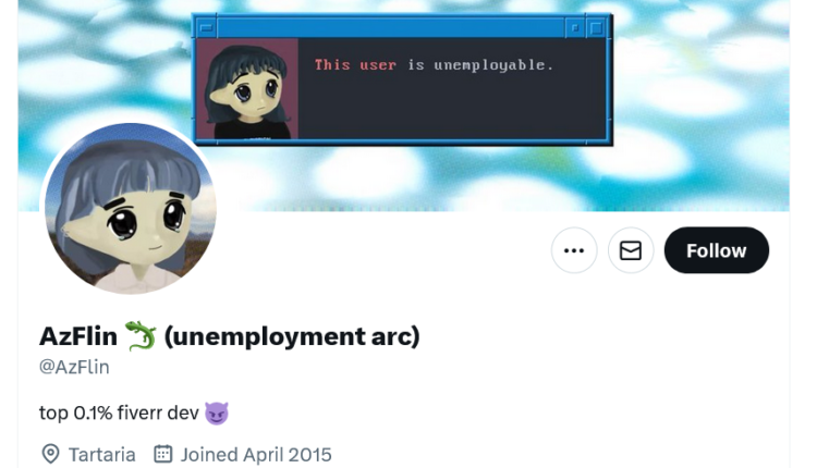 AzFlin is making fun of their new unemployment status. Source: X (formerly Twitter).