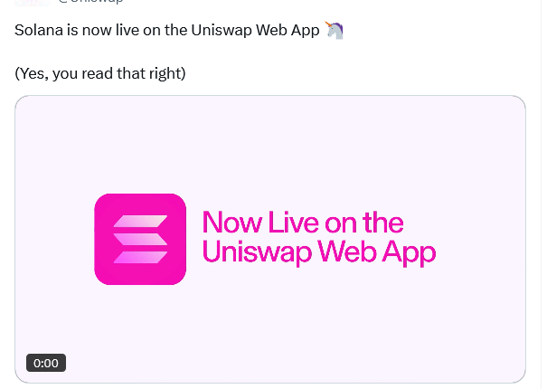 Meanwhile, Danny Daniil, engineering lead of trading at Uniswap, stated that Solana’s launch will help Unichain, a layer-2 network launched by Uniswap Labs in February, become the best chain for trading.