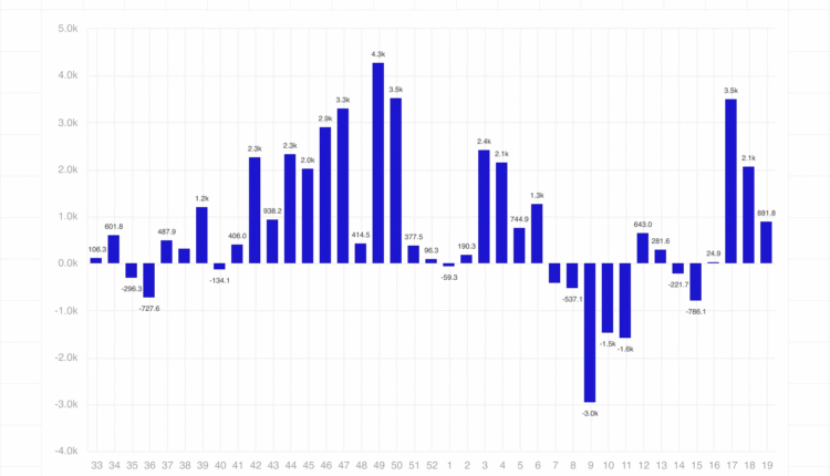 The latest figure marks the fifth consecutive week of net positive flows, following nearly $7 billion in outflows during February and March.