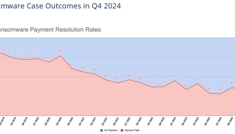 Fewer companies are giving in to criminals’ demands, with a February report from cyber incident response firm Coveware finding that only 25% of companies hit with extortion demands in the last quarter of 2024 paid the ransom.