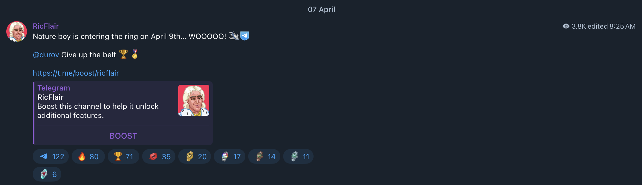Wrestling icon Ric Flair joins Telegram and touts new project. Source: Ric Flair