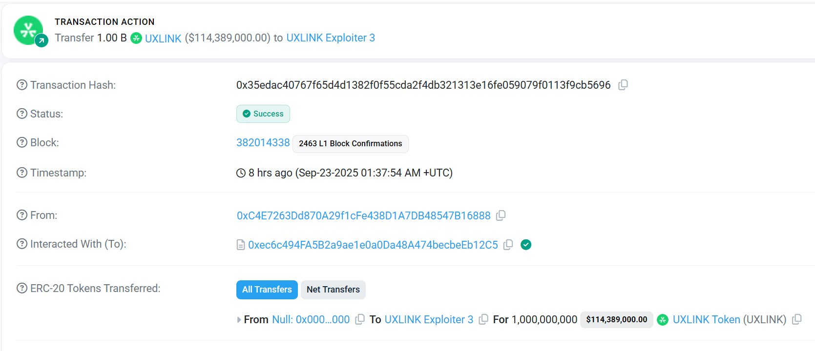 After confirming the breach, UXLink flagged that the attacker had started the unauthorized minting of tokens.