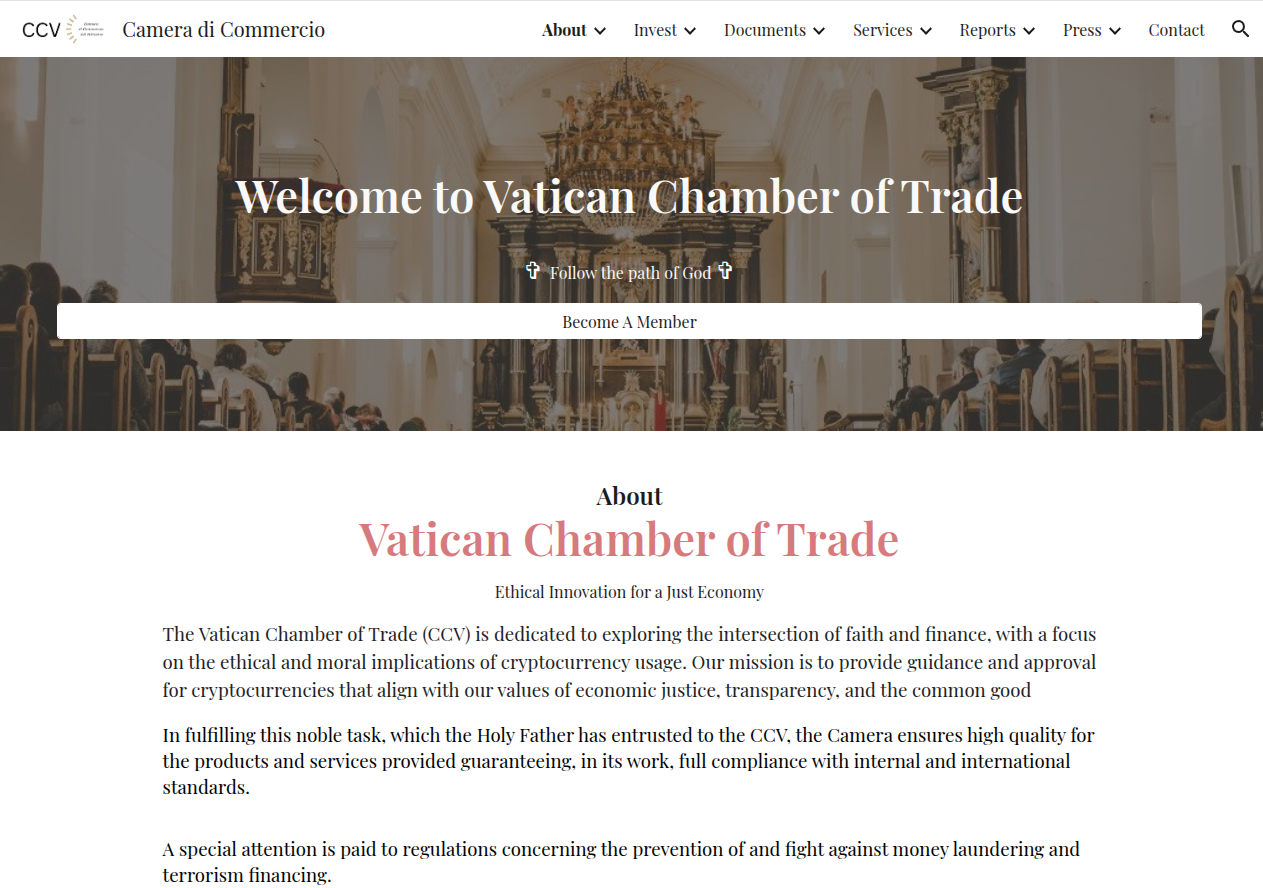 The promoters claim the VCT token will allow investors to participate in the economic growth of the Vatican Chamber of Trade and is backed by a diverse portfolio of tokenized assets and real-world initiatives.