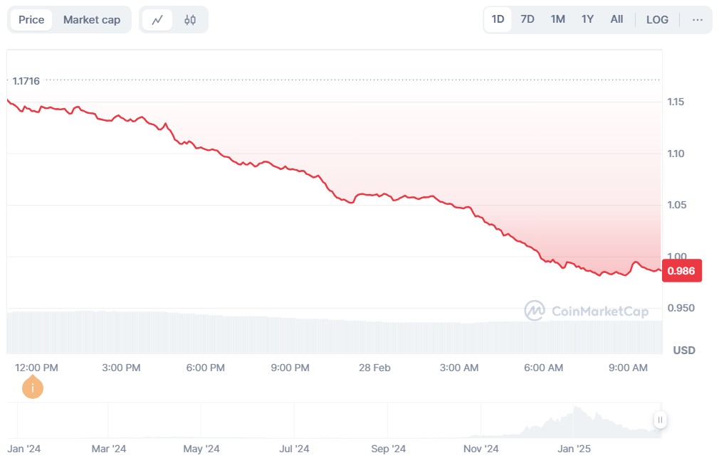 VIRTUALS bleeds as global financial markets suffer losses. Source: CoinMarketCap
