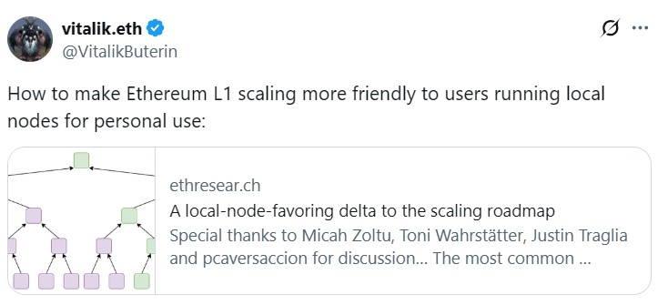 On May 19, Buterin shared a post outlining how to make Ethereum’s layer-1 scaling “more friendly” to users running local nodes for personal use. The Ethereum co-founder highlighted the importance of independent users running nodes, saying that a market dominated by a few Remote Procedure Call (RPC) providers risks censorship.