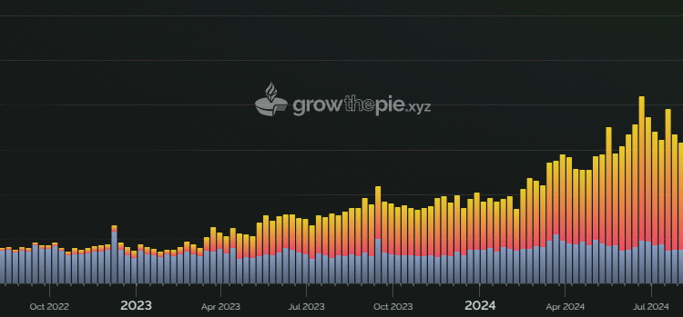 Weekly chart of unique active addresses in the Ethereum ecosystem. Source: GrowThePie
