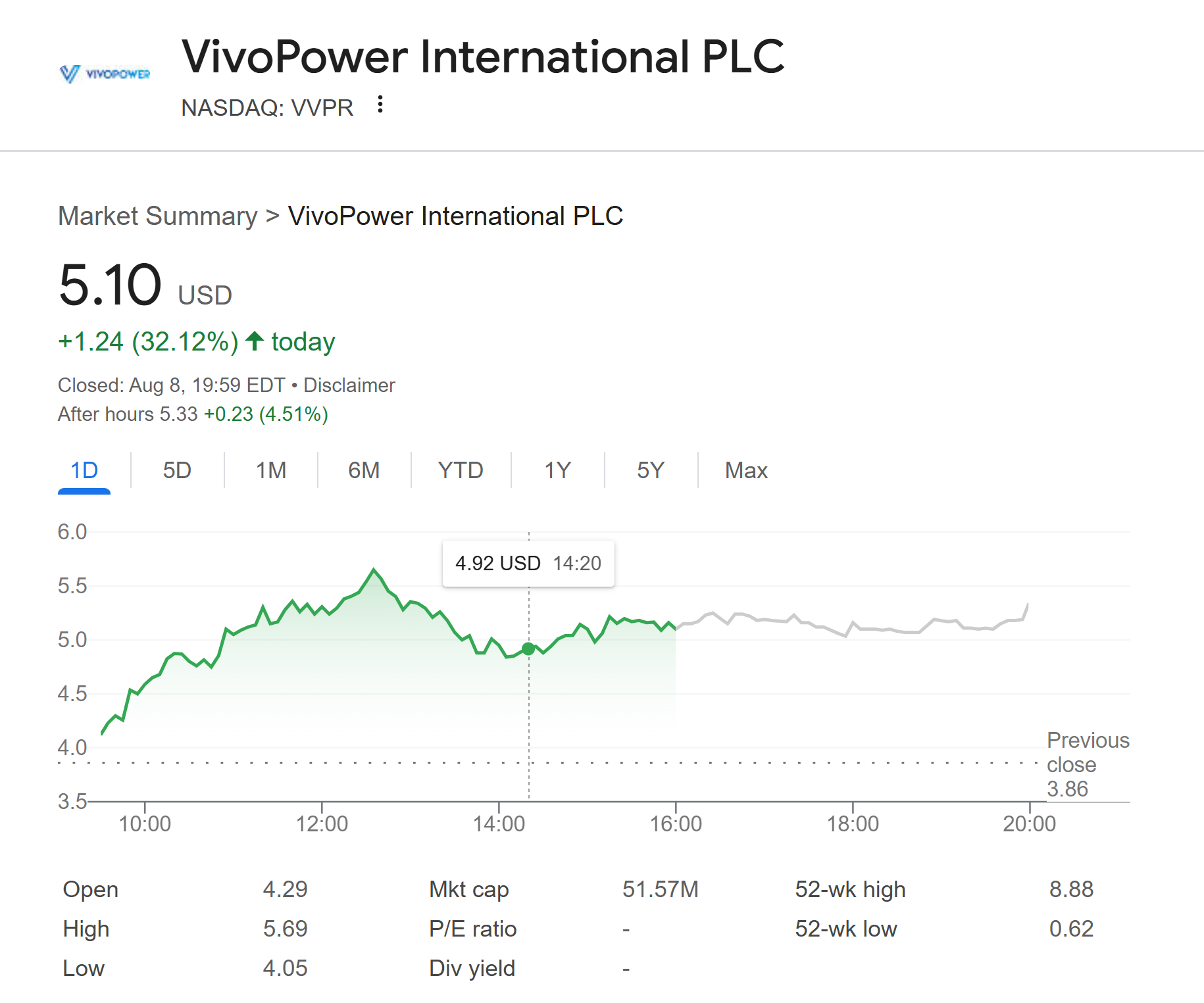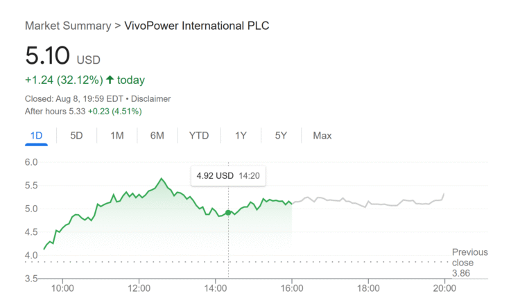 Nasdaq-listed solar power company VivoPower International PLC saw its shares jump 32.12% to $5.10 on Friday after the company announced plans to purchase $100 million worth of privately held Ripple Labs shares, expanding its XRP-focused digital asset treasury strategy.