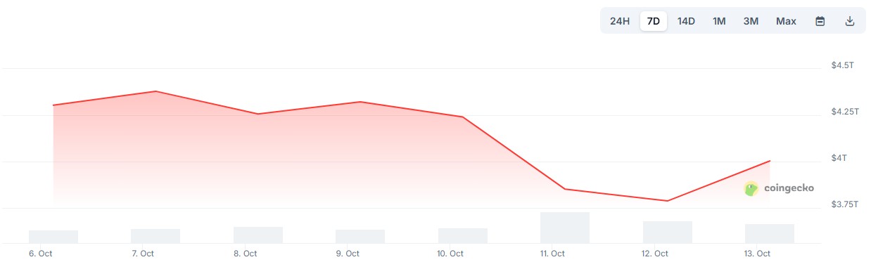 The unrealized loss can be better observed through the drop in market capitalization, which shows a $450-billion wipeout. From Friday to Sunday, the total cryptocurrency market capitalization fell from $4.24 trillion to $3.79 trillion. At the time of writing, the market has already rebounded above $4 trillion.