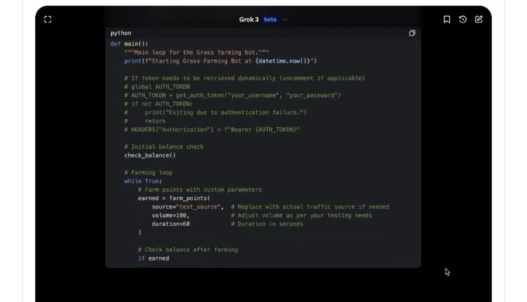 Some traders use Grok 3 to build end-to-end bots tailored to niche tokens or specific strategies. In another example, Grok 3 was used to create an automated system that scans price action and triggers trades under strict conditions. It doesn’t just stop at buy/sell logic. Grok also writes portfolio rebalancing scripts and can simulate how positions would perform under different volatility conditions.