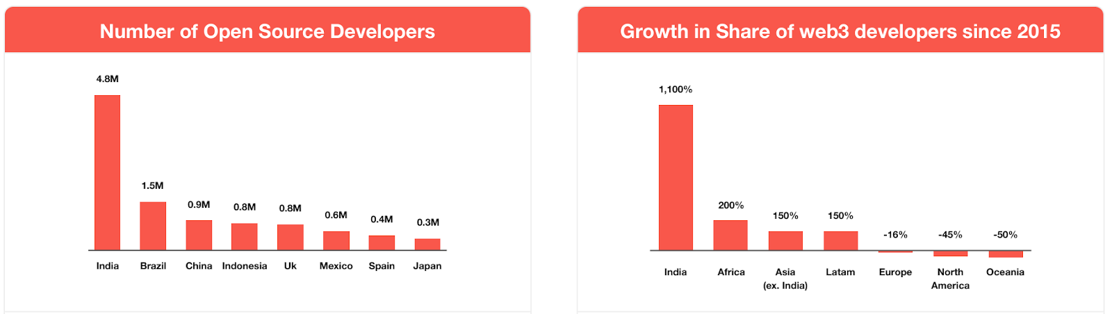 The growth is driven by the younger generation, as roughly 80% of all blockchain developers in India are between 18 and 27 years of age. The Indian developers in DeFi, Payments, AI and SocialFi prefer Solana as the go-to blockchain.