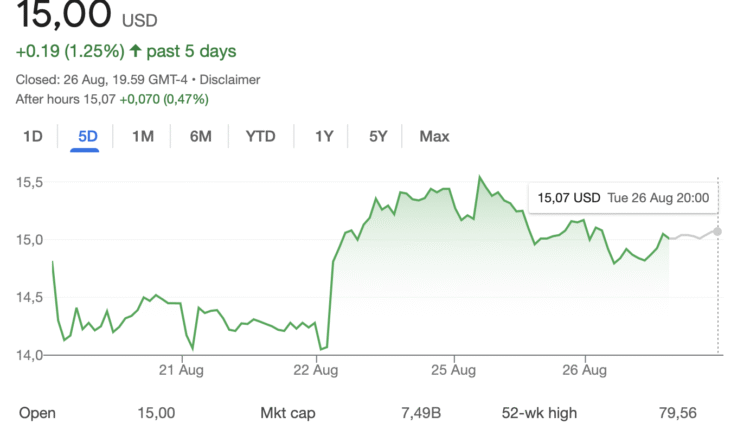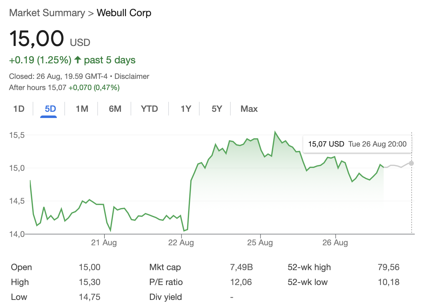 Shares in Webull (BULL) closed trading on Monday down 2.67% and its stock price traded flat on Tuesday, closing trading up under 0.3% at $15.