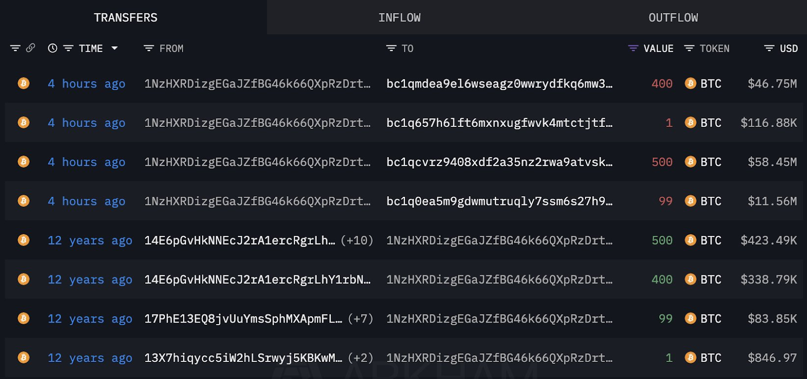 The unknown whale woke up after 12 years of dormancy to transfer 1,000 Bitcoin (BTC) — worth around $116 million at current prices — which he initially acquired for about $847 per coin. The BTC was worth around $847,000 at the time, which the whale hodled for over a decade before transferring it to new wallets on Wednesday, according to blockchain data platform Lookonchain.