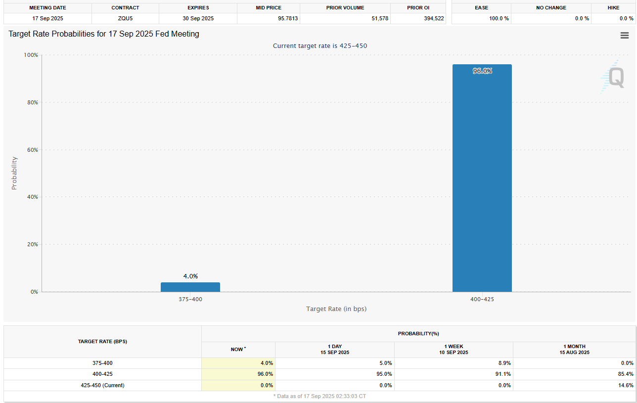 Market watchers are calling the Fed’s decision one of the most significant of the year, with 96% of participants anticipating a 25 basis point cut, according to the CME Group’s FedWatch tool. That estimate was up from 85% a month ago.