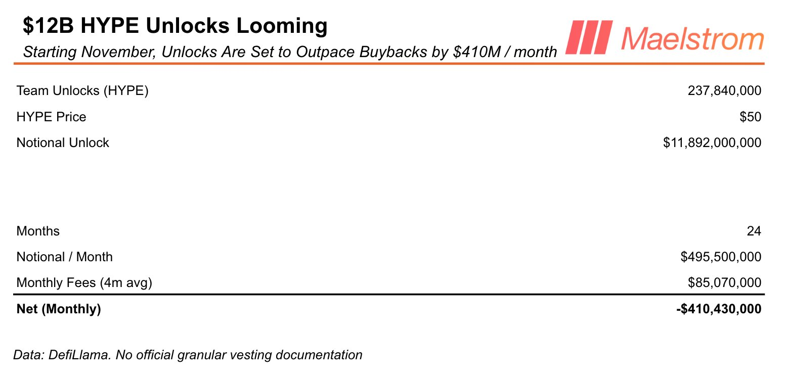 The selling comes as the HYPE token rallied to a new all-time high of $59.29 on Thursday, but faces its first major test in November when team tokens begin vesting.