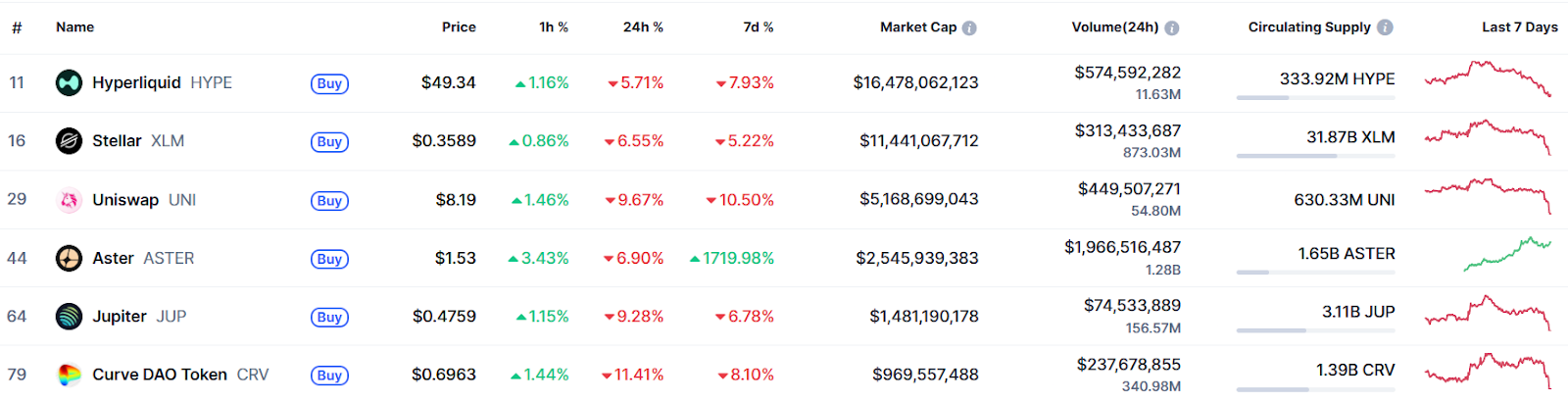 The HYPE token fell 7.9% during the same period to trade at $49.34 at the time of writing, according to CoinMarketCap data.