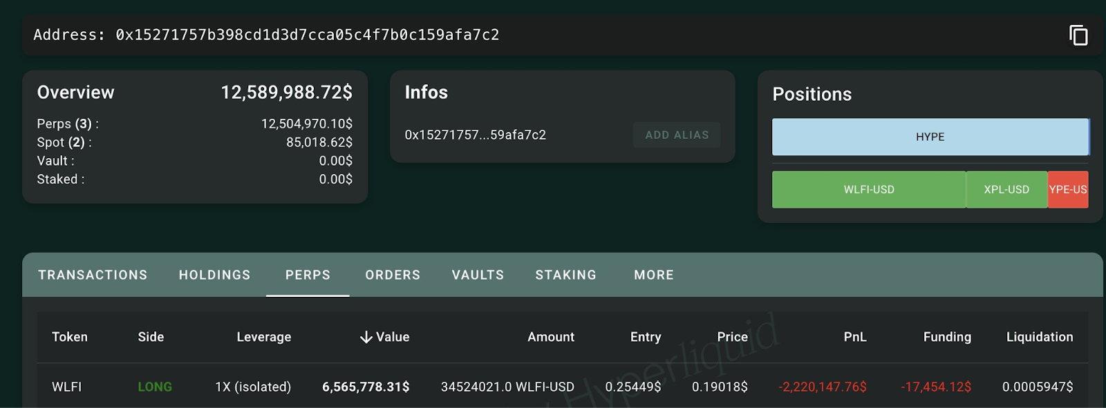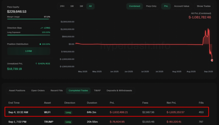 The investor had opened a second long position on the WLFI token just 15 hours after closing a previous one with a $915,000 profit, only to lose the $1.6 million.