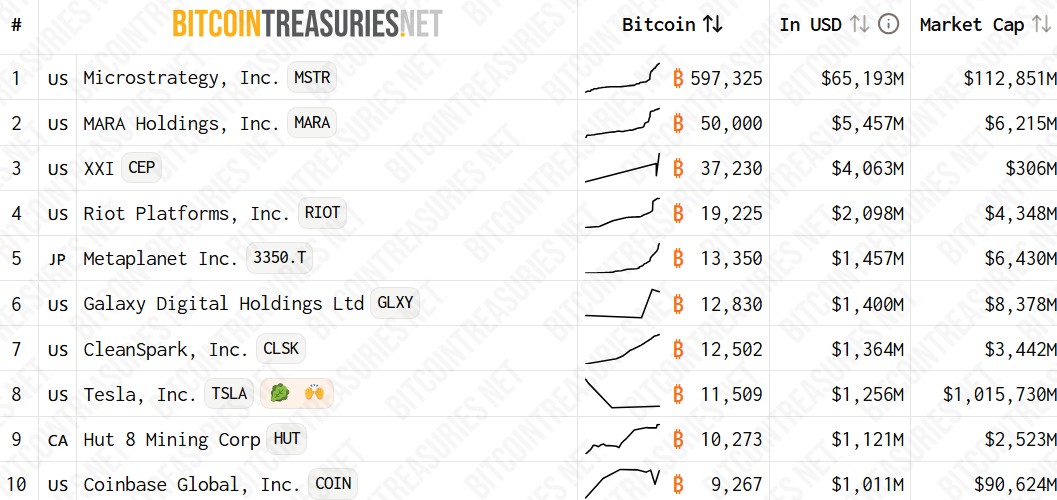 MARA holds the largest Bitcoin treasury among miners and is second only to MicroStrategy among all public companies with 50,000 BTC.