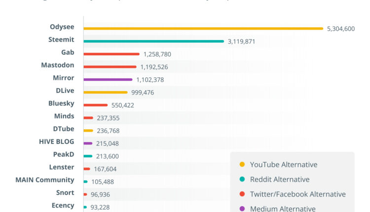 Data from April shows that Facebook, Instagram and Twitter hosted about 2.98 billion, 2 billion, and 372.9 million monthly active users, respectively. By comparison, one of the most visited decentralized social media networks Odysee averaged only 5.3 million average monthly unique users between January and April, according to CoinGecko.