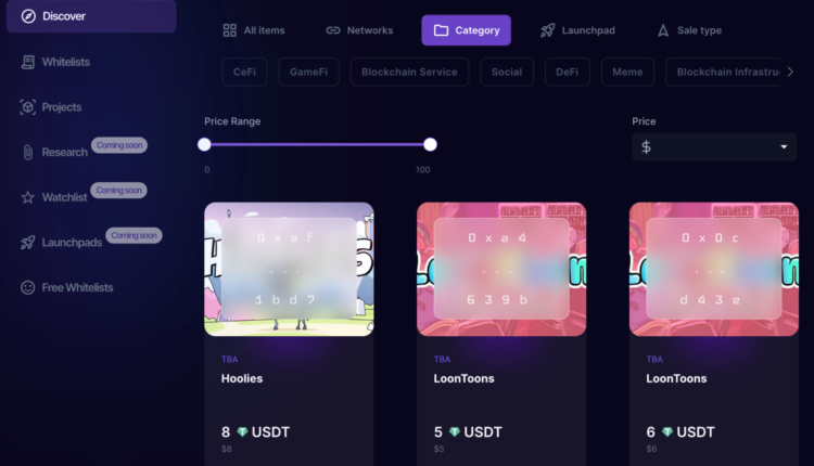 Users can discover new projects based on category, network, or sale type. Source: WhiteList Zone