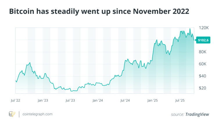 Bitcoin’s reputation as “digital gold” has grown significantly since November 2022, when it traded around $16,000. Since then, its price has risen steadily.