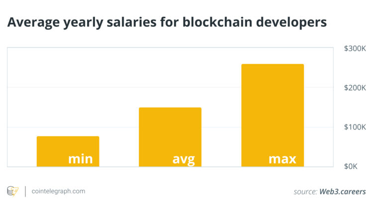 Developers command high salaries even for junior positions. On average, a North American blockchain developer can earn over $150,000.