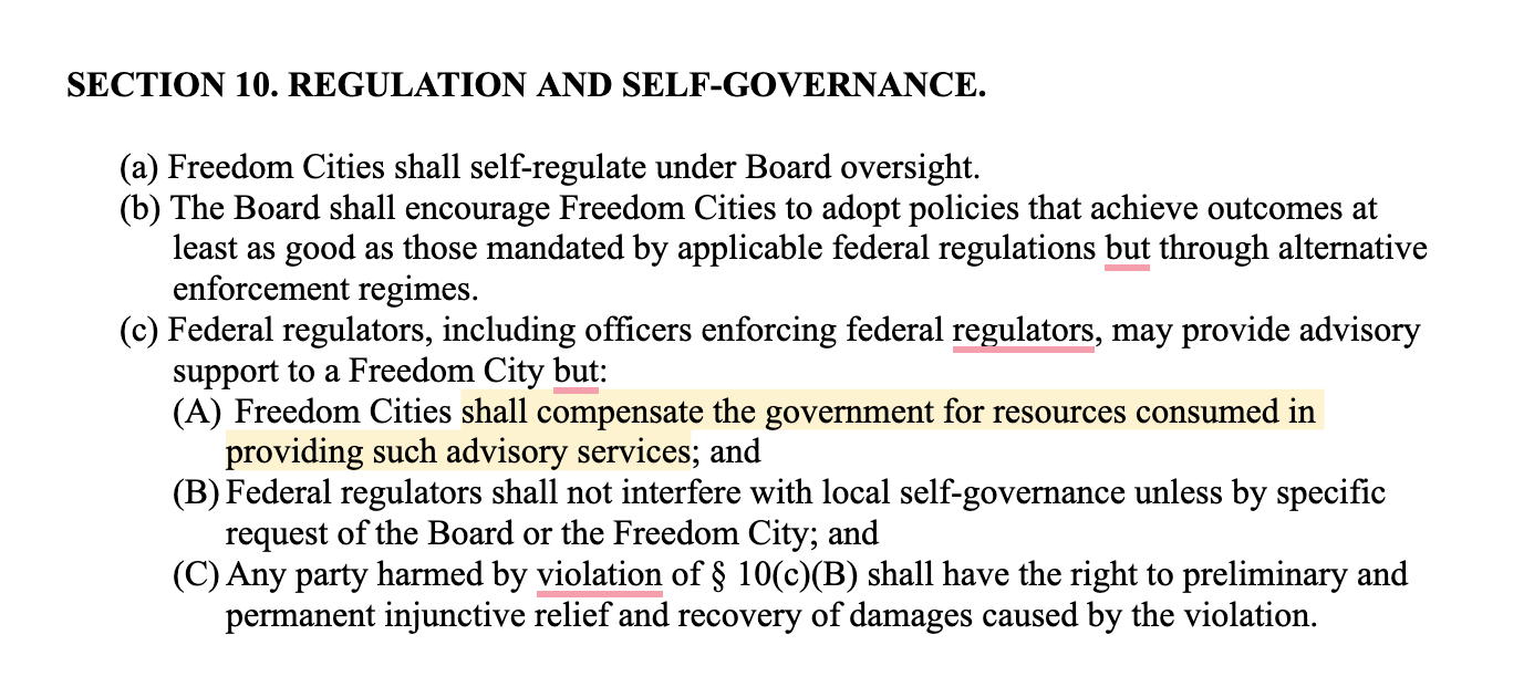 Part of the Freedom Cities Act, outlining self-governance. Source: Tom Bell