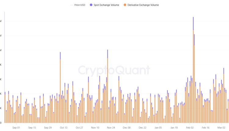 Bitcoin’s derivatives volume consistently exceeds spot volume. Source: CryptoQuant