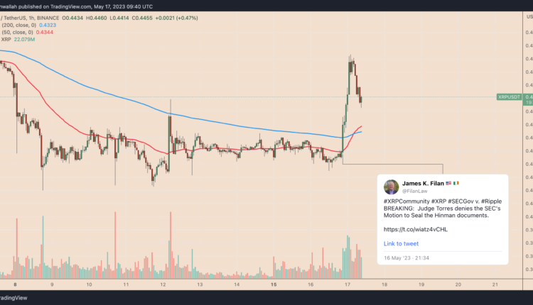 XRP price noticeably jumped when former defense attorney James K. Filan tweeted a copy of a May 16 judgment concerning the legal battle between Ripple and the SEC.