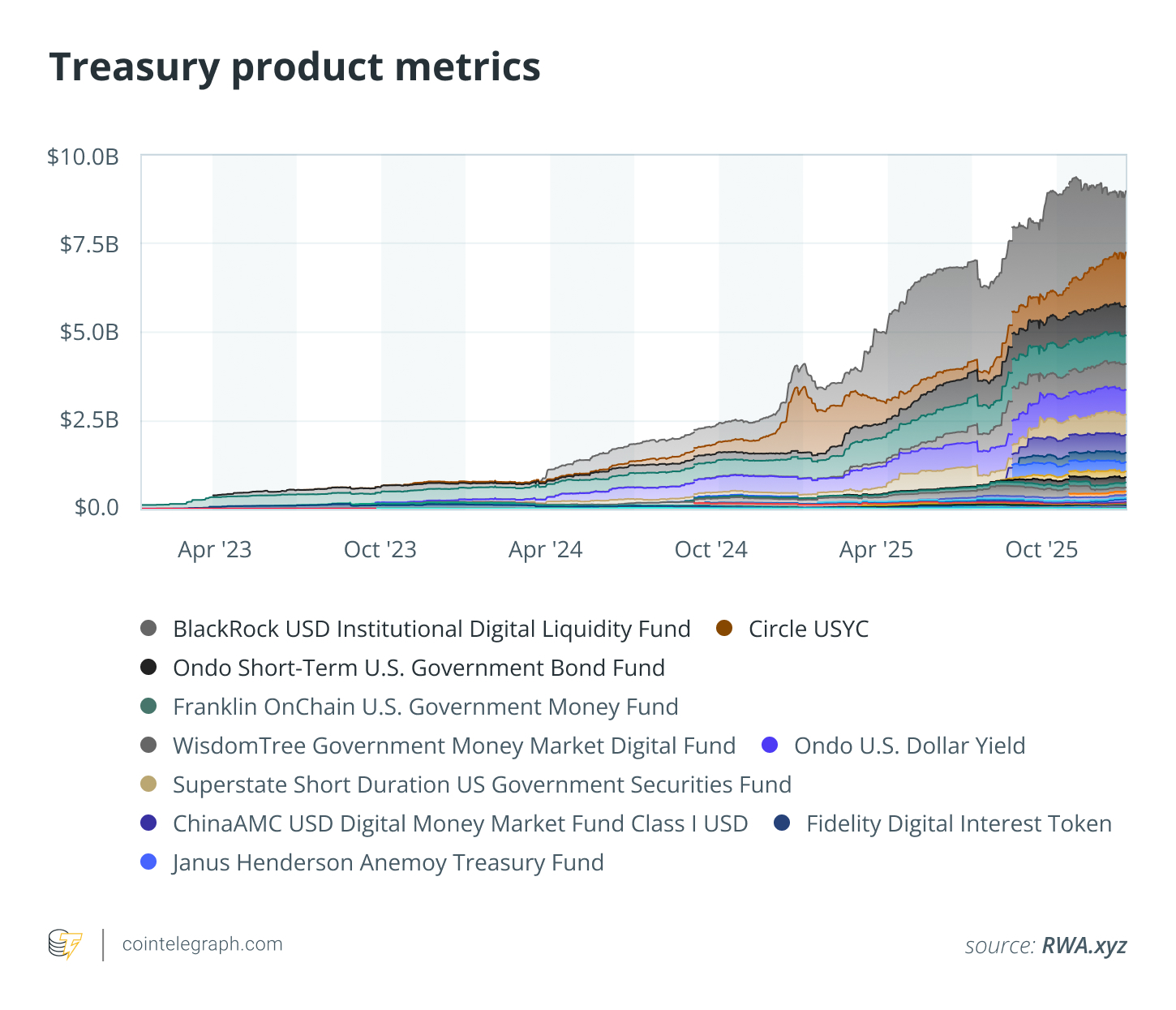 Meanwhile, Calastone estimates more than $24 billion in tokenized assets under management as of June 2025, with money market and Treasury bond funds making up a meaningful share.