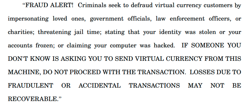 The bills mandate that labels warning of the potential for fraud must be placed “within the customer’s field of vision” on the front of the machine.