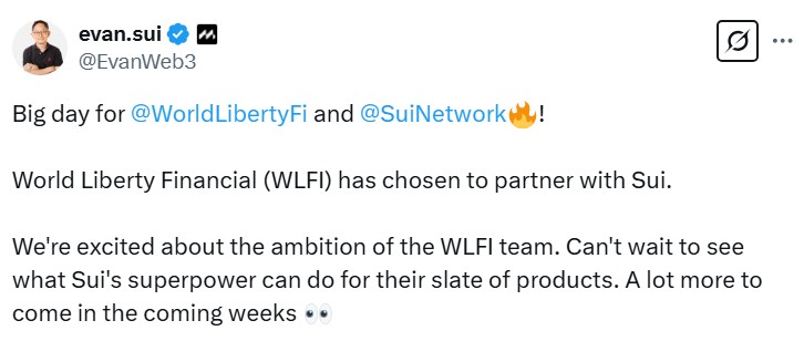 Mysten Labs CEO promotes Sui’s “superpower” following the WLFI partnership. Source: Evan Cheng